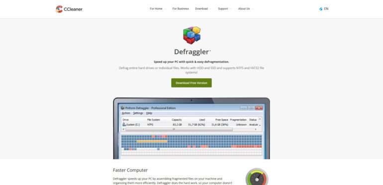 Hard drives can become fragmented over time, which may reduce performance. Defraggler is a lightweight disk defragmentation tool that allows you to optimize entire drives, specific partitions, or even individual files.