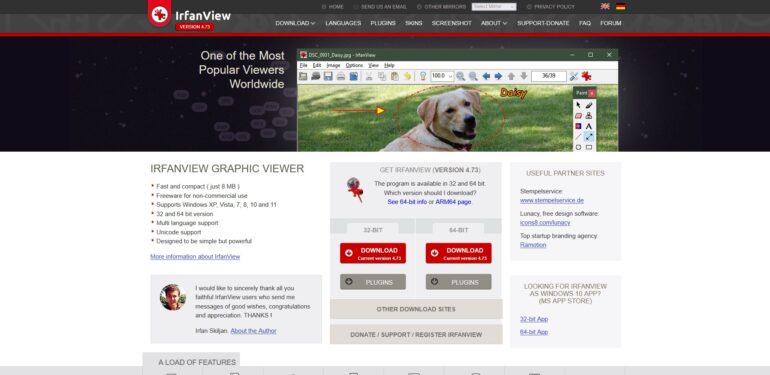 IrfanView is a fast and lightweight image viewer that supports a wide range of formats. Despite its small size, it offers powerful image viewing and conversion tools.