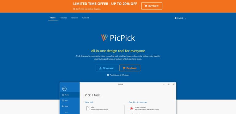 PicPick is an all-in-one screen capture and design tool. In addition to taking screenshots, it includes several useful utilities such as a color picker, pixel ruler, and screen magnifier.